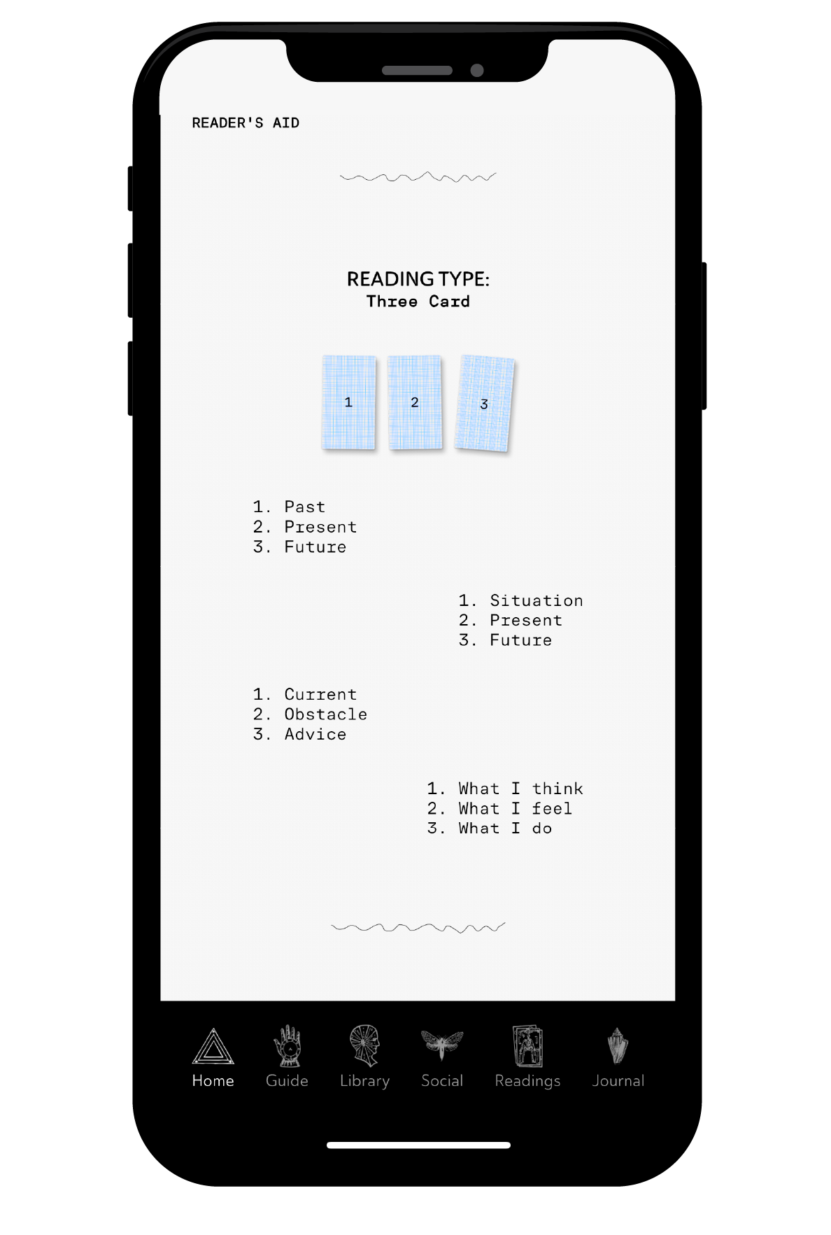 Reader’s Aid App was created to support your tarot journey. It guides you through the meanings of each card, shows you how to use them in spreads, and provides full interpretations of your readings, all while helping you deepen your understanding of the cards. The app features a complete library of tarot card meanings, a comprehensive guide and history of tarot, and a tarot spread guide. It organizes and saves all your readings, including a private journal where you can write notes, reflect, and track your insights. Plus, the internal social tarot page lets you view your readings in private mode or share them with the community for advice and guidance from fellow users.